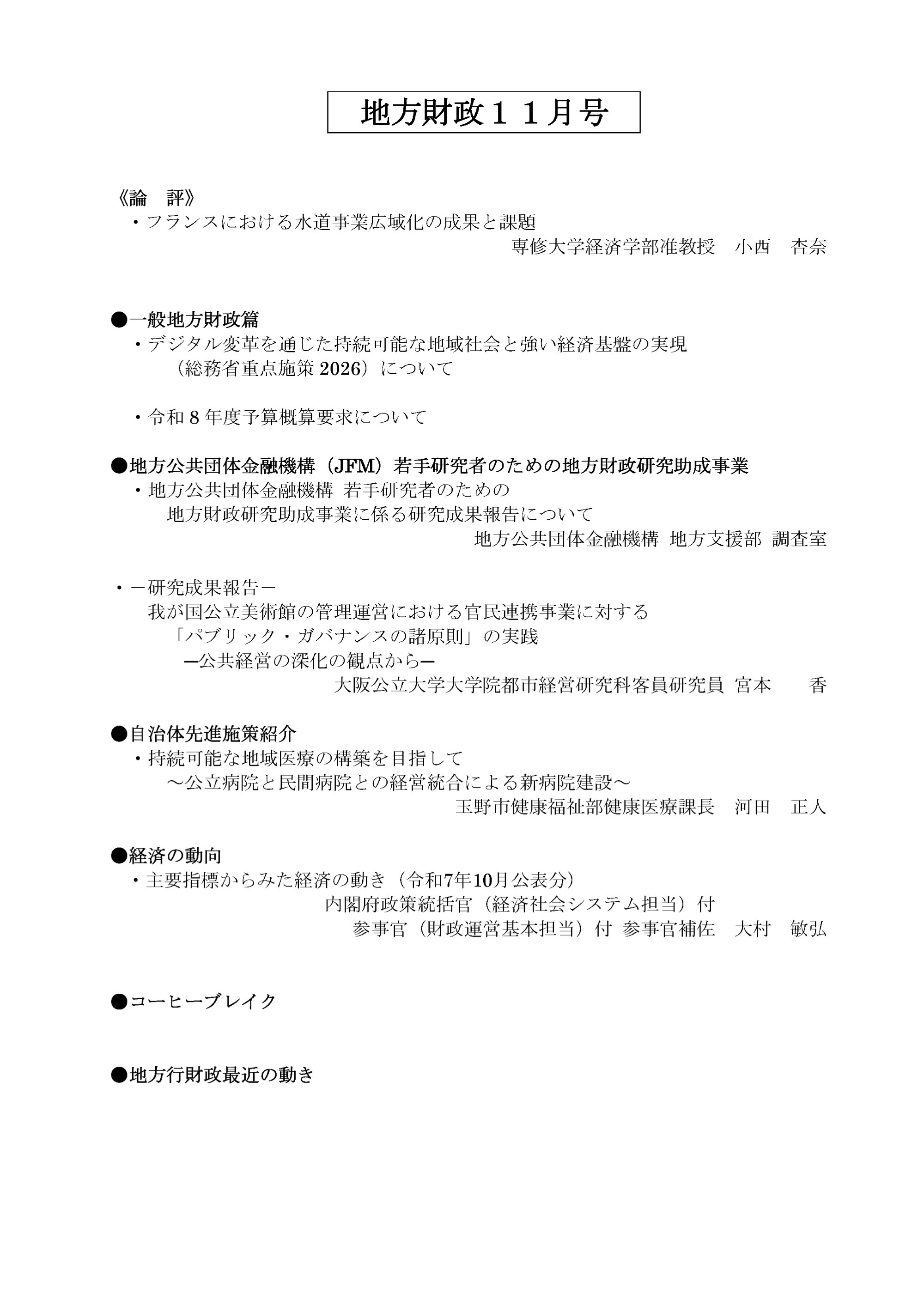 地方財政各般について、問題点を迅速にわかり易く解説した権威ある地方財政専門誌。