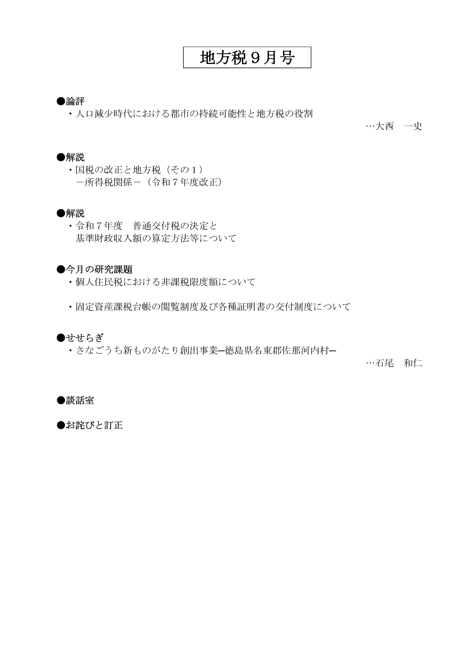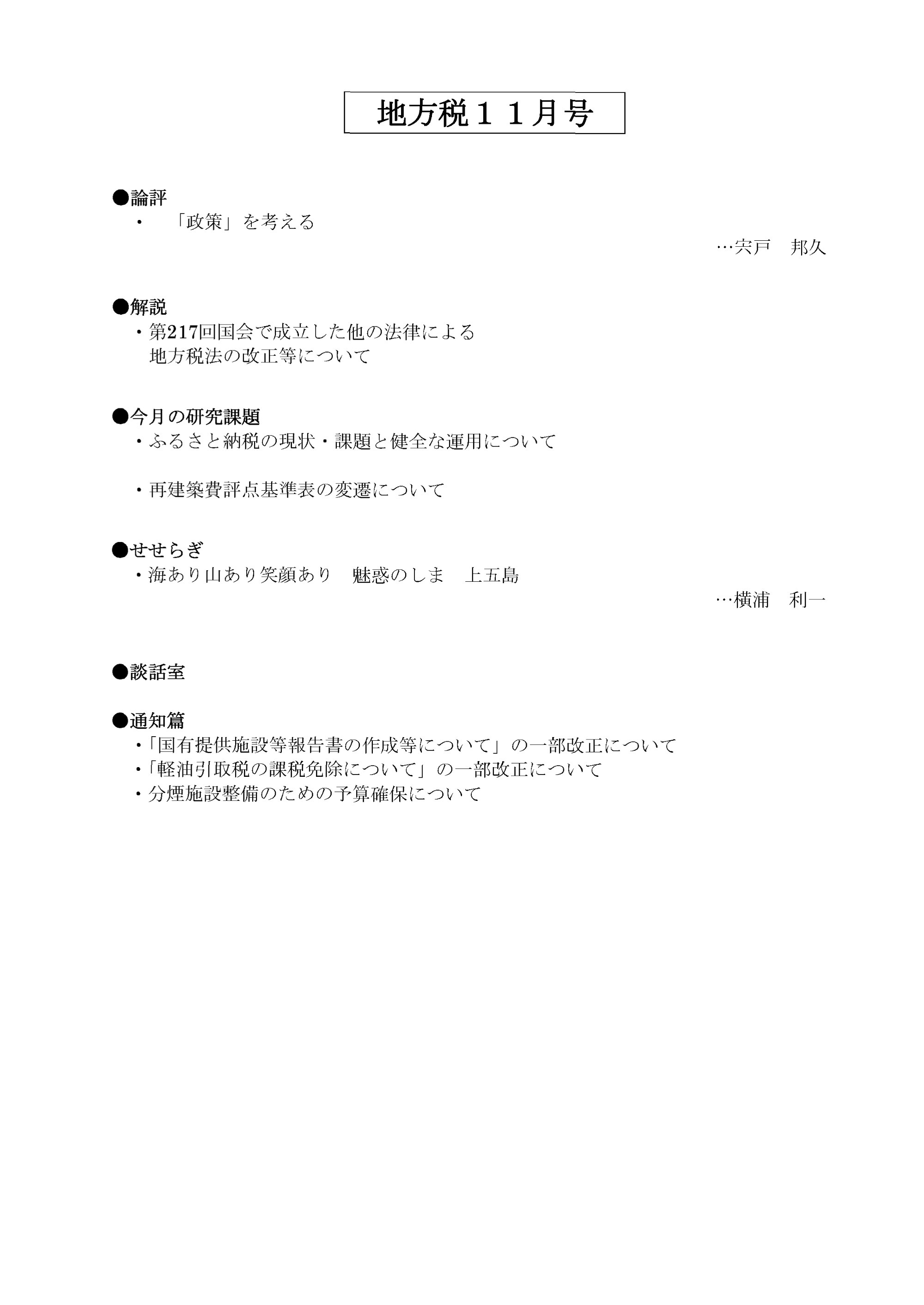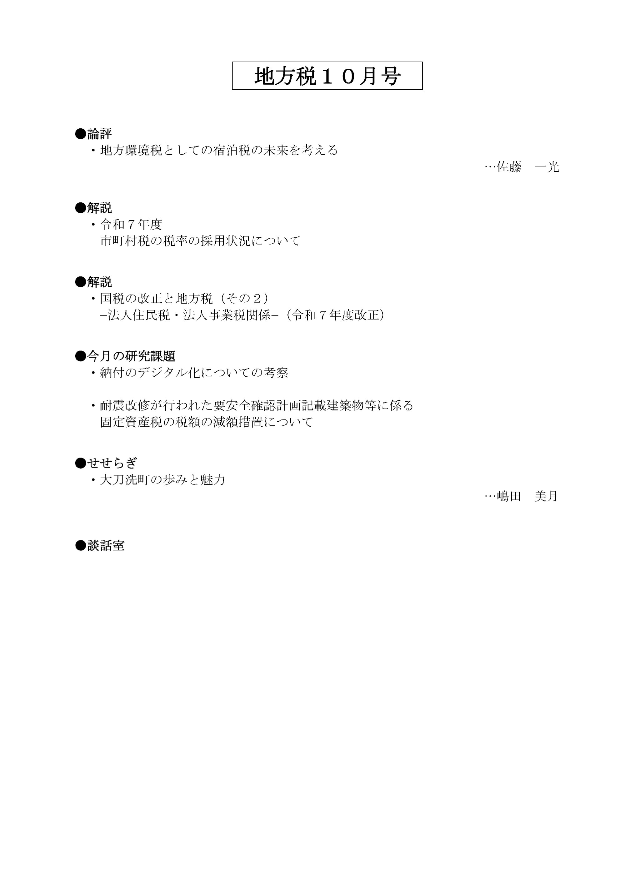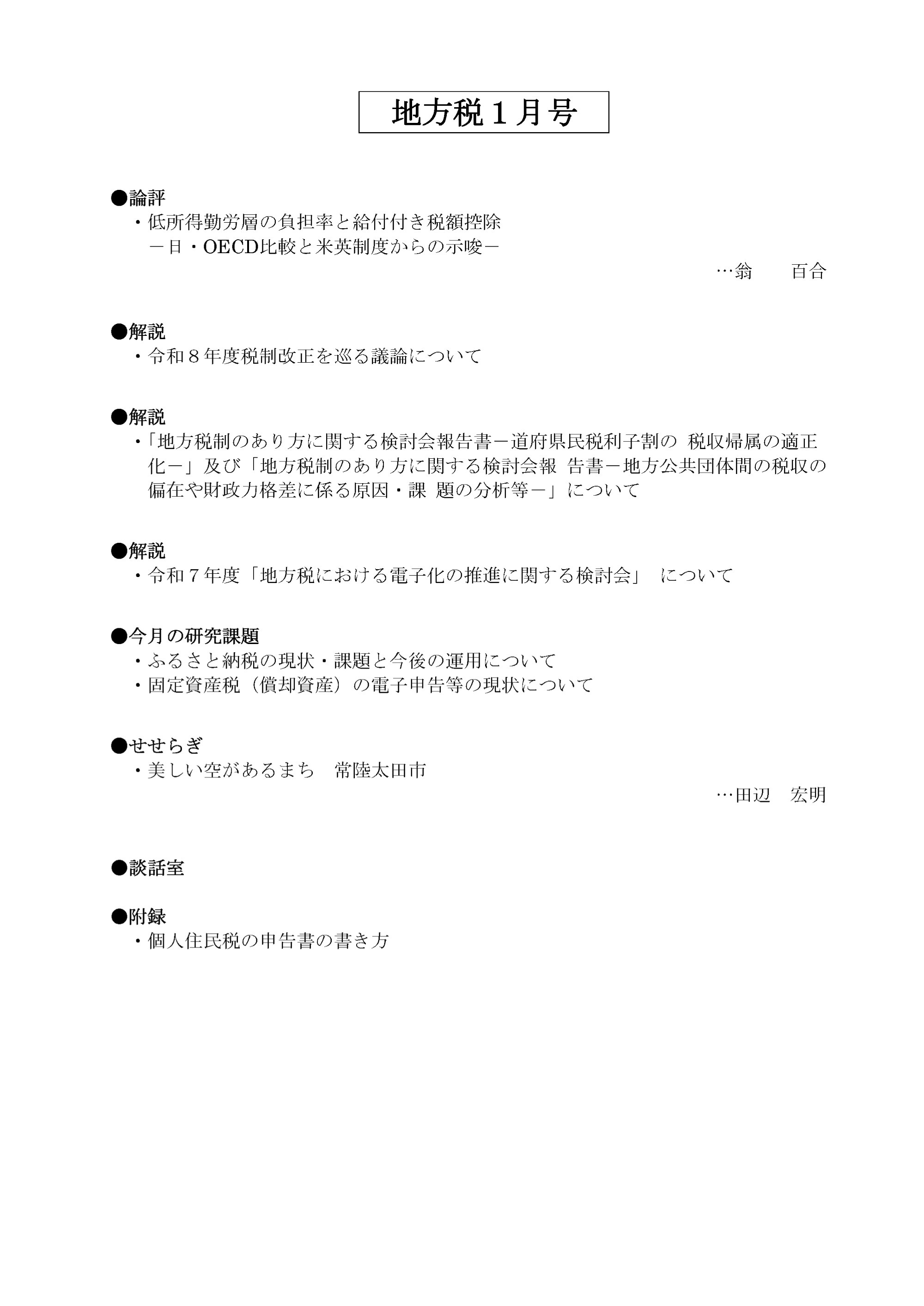 地方税法の年度改正、政省令改正の解説の他にも税制調査会等の動向や報告書等、最新のトピックスを掲載。