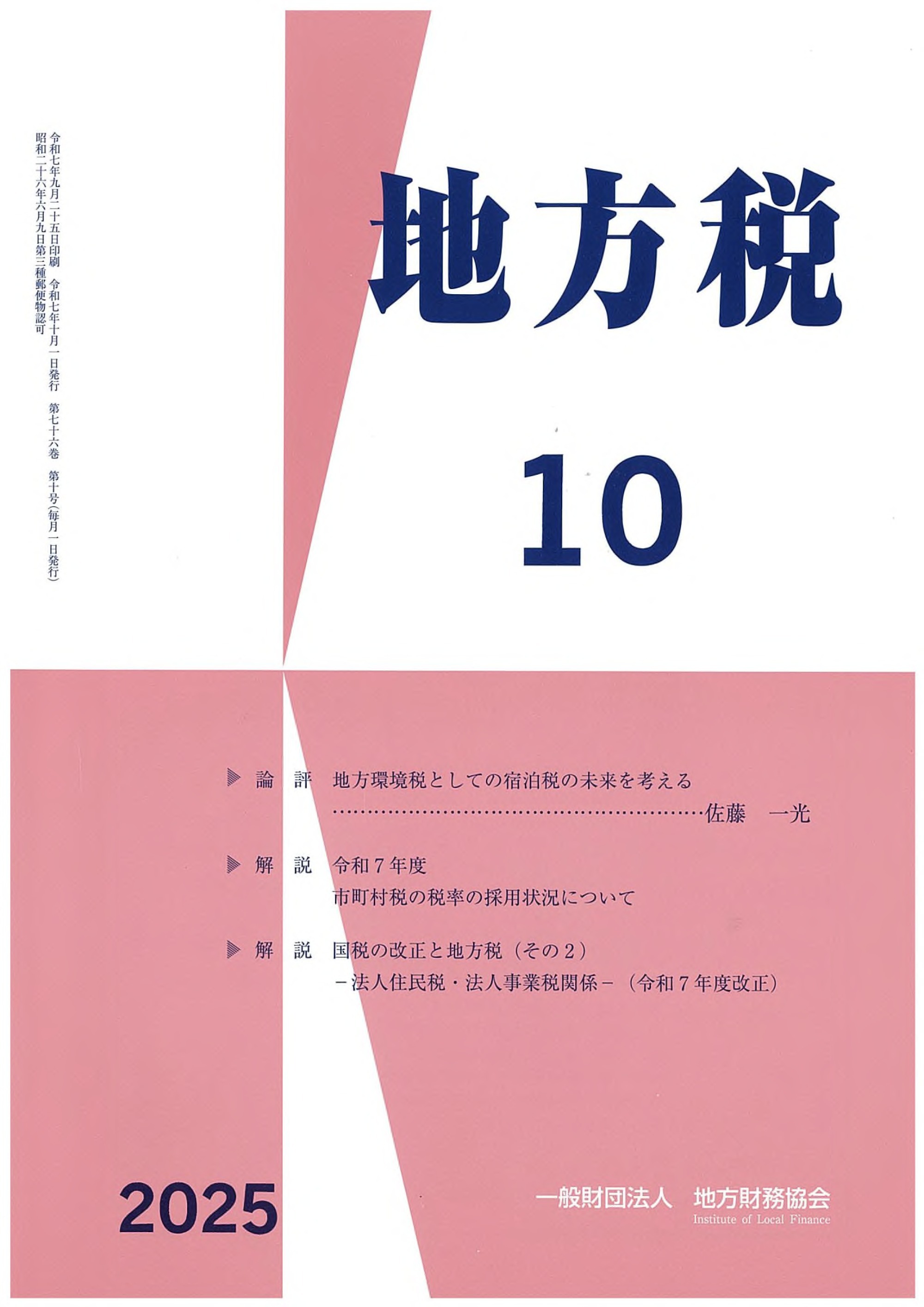〇論評 〇解説 〇今月の研究課題 〇せせらぎ 〇談話室 〇政府税調の動き 〇通知・資料篇 他